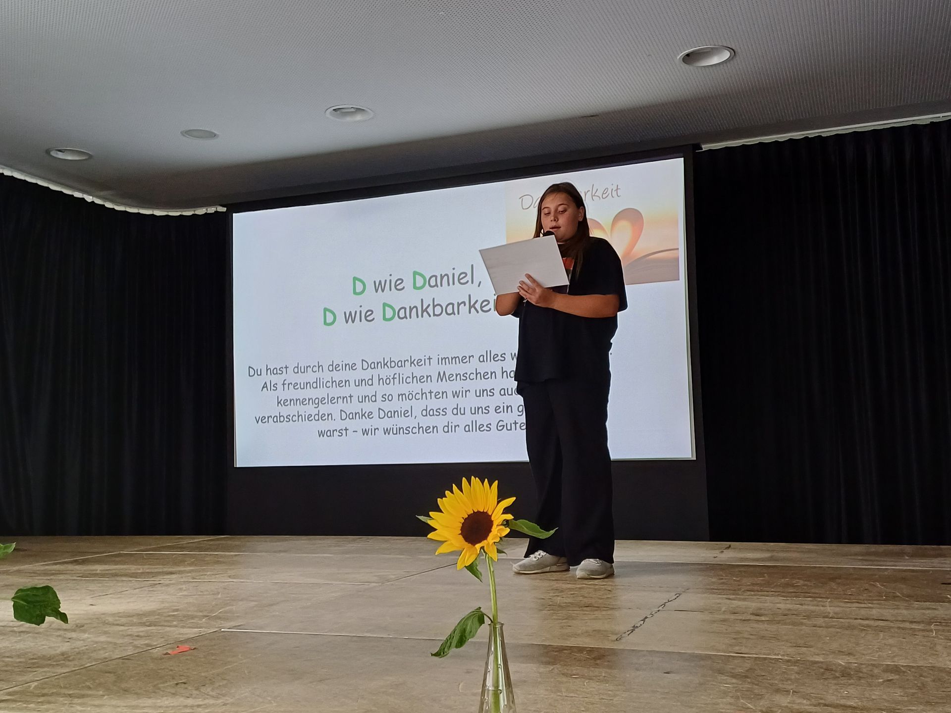 Zum Schluss gab es noch die Verabschiedung von unserem Schulleiter Herr Dollinger und unserer Kollegin Frau Moosbrucker. Auch auf diesem Wege bedanken wir uns nochmal für euer tolles Engagement, das tolle gemeinsame Arbeiten und für die schöne Zeit zusammen.