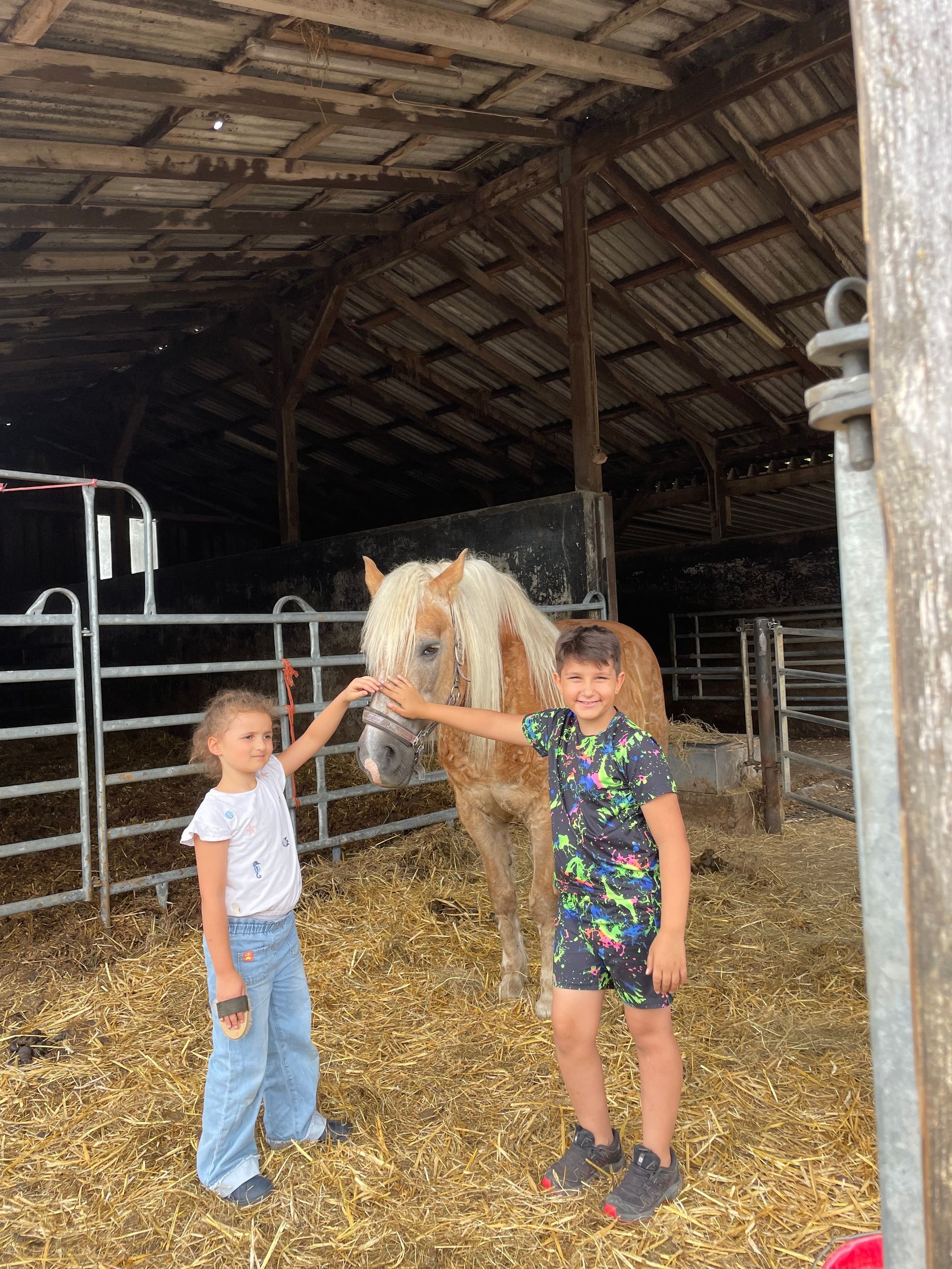 Im Anschluss wurden die Geräte der Landwirtschaft gezeigt und erklärt und alle Kinder durften auf einem Pferd des Hofes reiten.