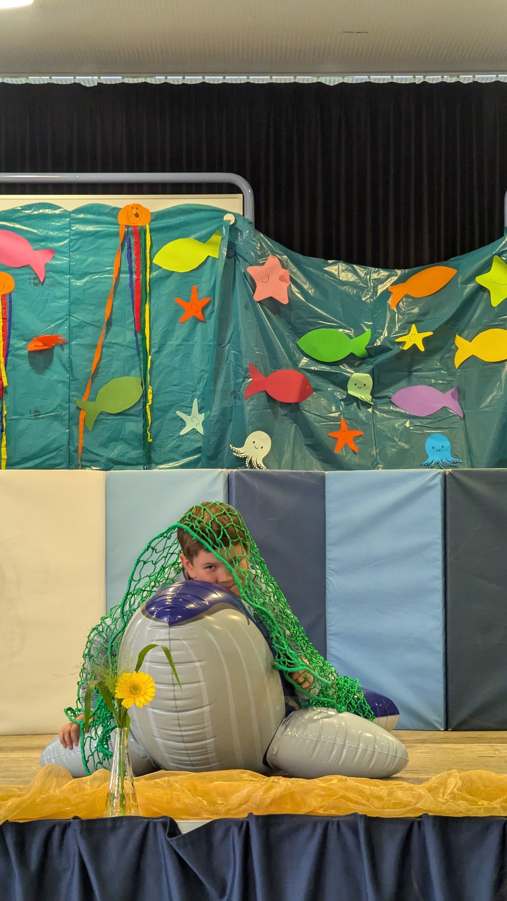 Den Programmauftakt machte die Grundstufe zusammen mit Frau Alber: Das Theaterstück von Hainer, dem kleinen Hai, brachte uns eine wichtige Botschaft nahe: Das Besondere steckt in jedem von uns - jeder hat ein Talent!