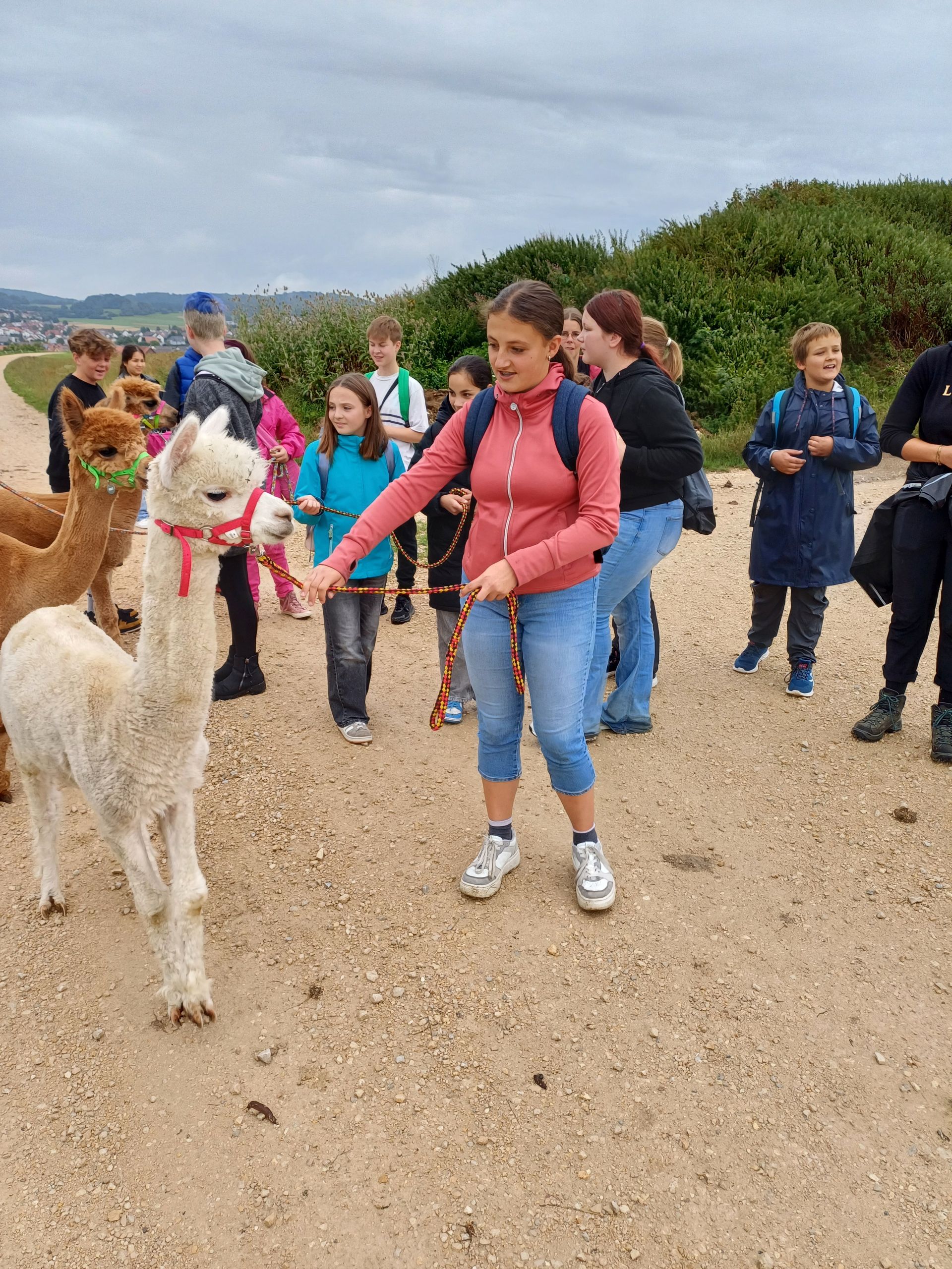 Heute, den 25.07.2025 machte die Orientierungsstufe eine Alpakawanderung in Engstingen.